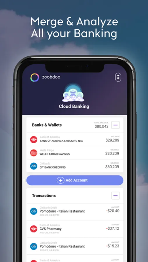 Cloud Banking: Merge, manage & analyze all your banks (US) from one central location. (Secure connection by Plaid)