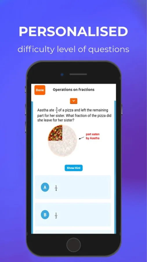 • Intelligently cued multiple-choice Maths questions with a focus on understanding concepts.