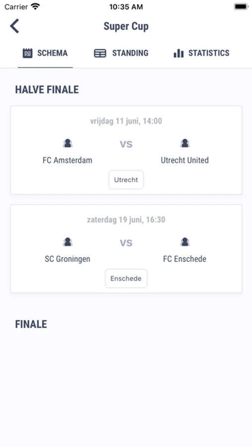 The Cupper apps enables you to always be up-to-date with you're soccer team. You can see all scheduled matches, see the results of the matches and get live updates from matches.