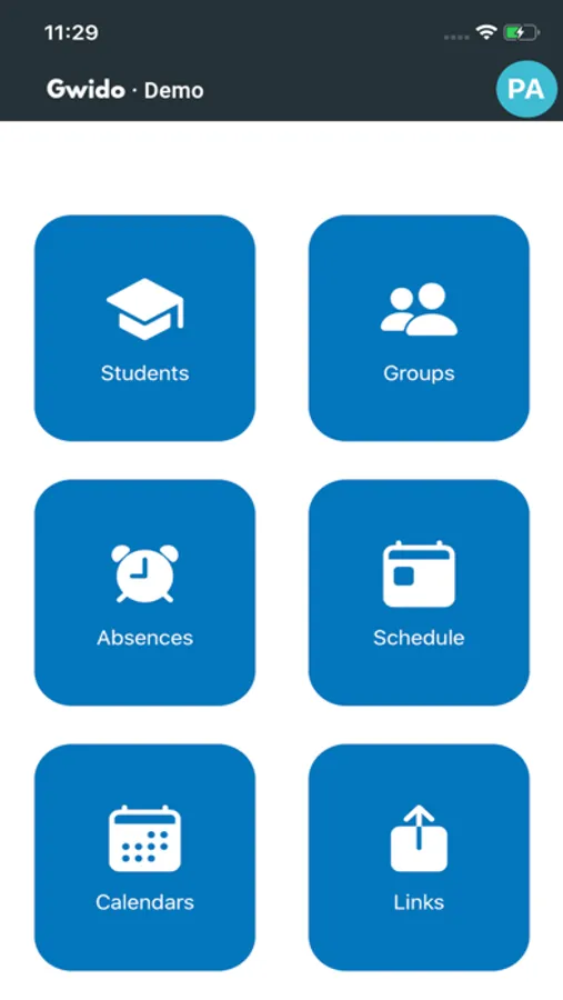 Permet accedir a informació bàsica i a funcions essencials relacionades amb l'activitat diària dins el context educatiu Gwido.