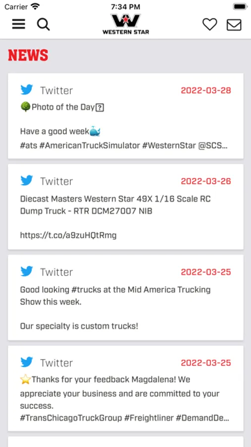 Western Star Trucks Star Source gives you quick access to training materials customized for your individual truck configuration. It also provides quick and easy access to up-to-date news, videos and brochures from Western Star Trucks for dealer and enthusiast reference. This app gives you the ability to preview, save and share videos, brochures and links, and provides quick links to other Daimler Truck North America resources.