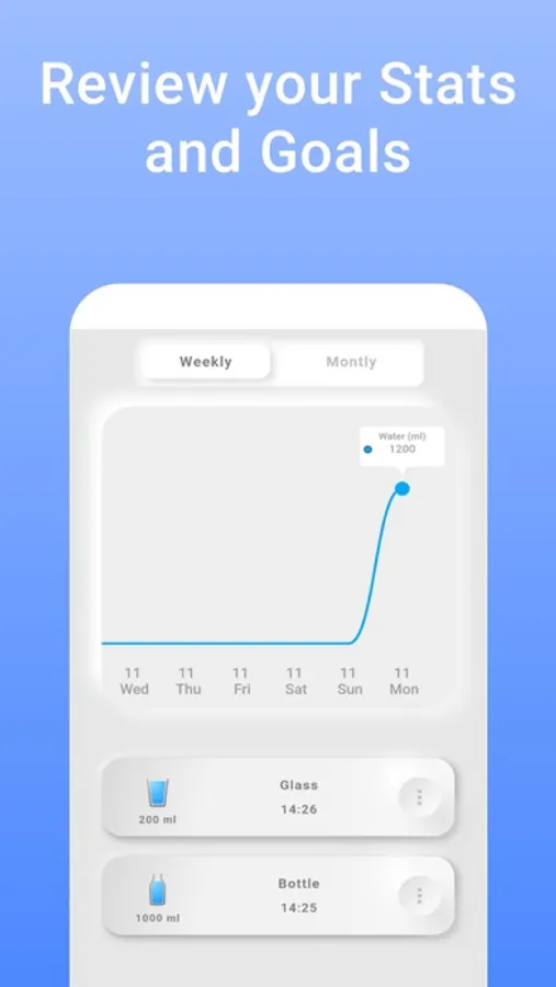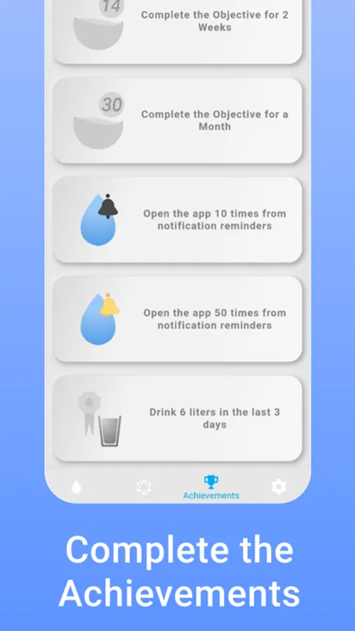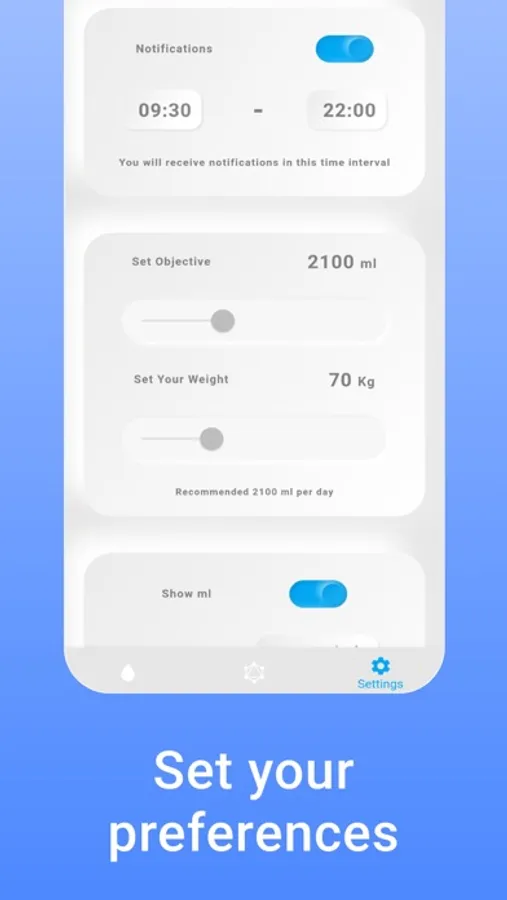 The app allows you to track your progress and customize your daily goals by setting your weight and how much water you want to drink.