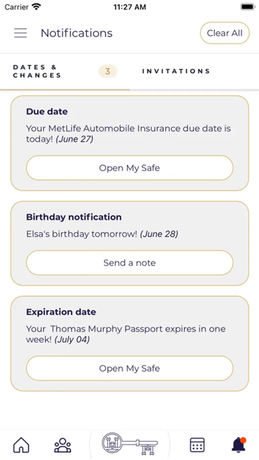 Save time, money and hassle with reminders for expiration and due dates for passports, credit cards, property tax bills, insurance policies and more.