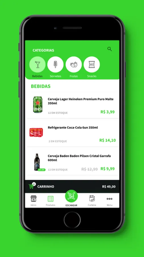 As lojas são autônomas e os usuários podem realizar as compras utilizando tecnologia self-checkout pelo app.