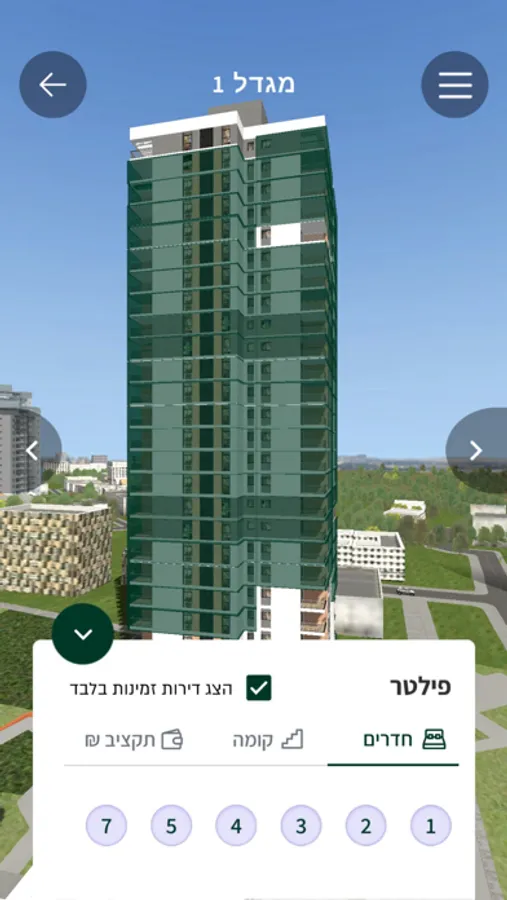Our mobile app provides a 3D interactive experience of project environment and apartments in one click. Filter the apartments by size, price or number of bedrooms. Take an exciting 360 tour of your new home, and explore the building's neighborhood.