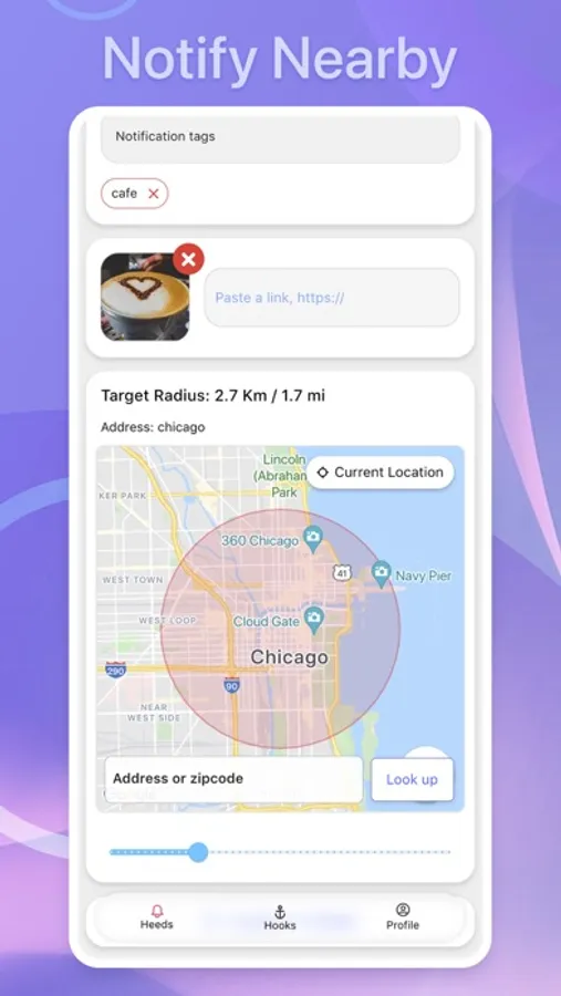 HeedHook connects users to each other and businesses by customized heeds (notifications). You can easily filter and target nearby people by location, distance, time, and tag while others can use the same filters to fine-tune the heeds they receive.