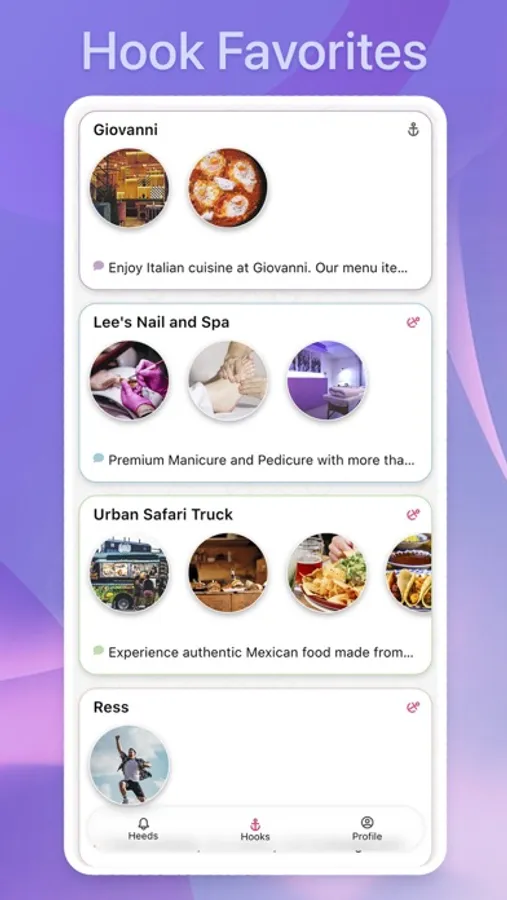 Heedhook is also a social space where you communicate with other users by sending heeds or leaving comments under others’ heeds. Hook to (follow) other users or businesses to receive their heeds regardless of your distance.