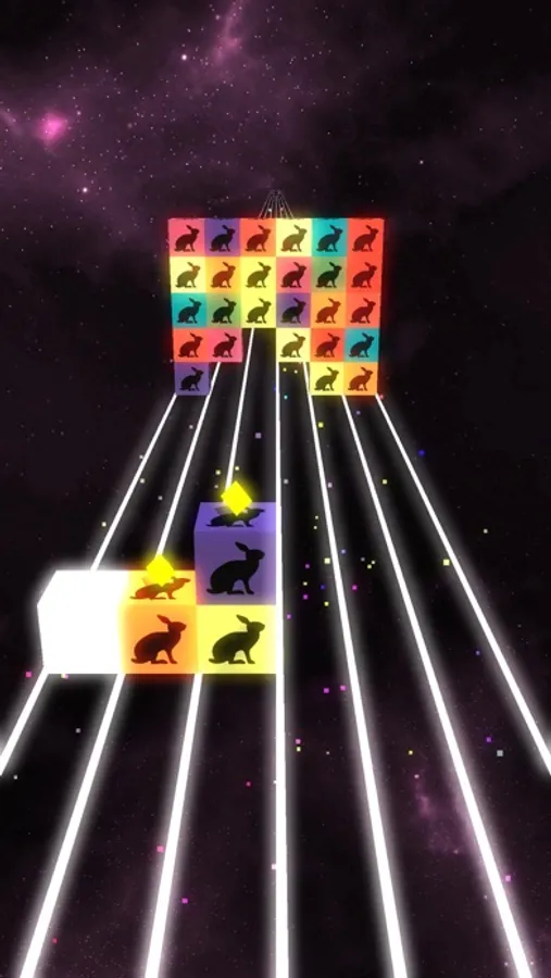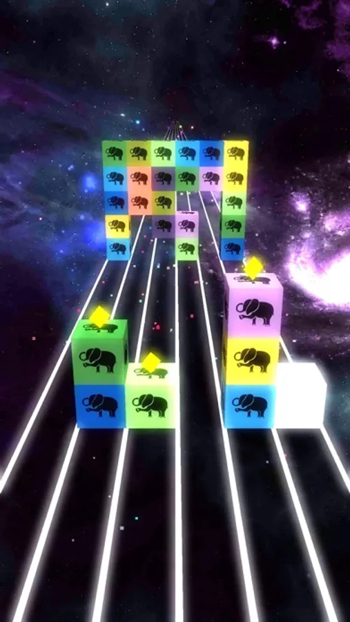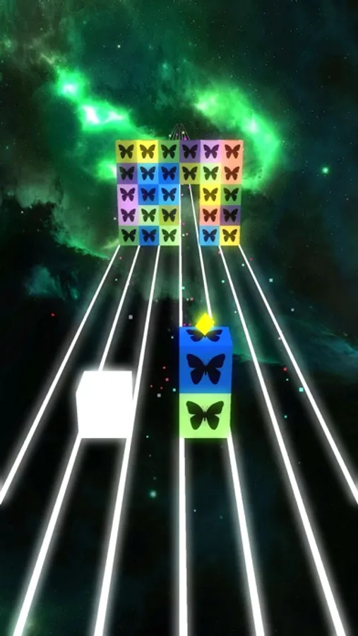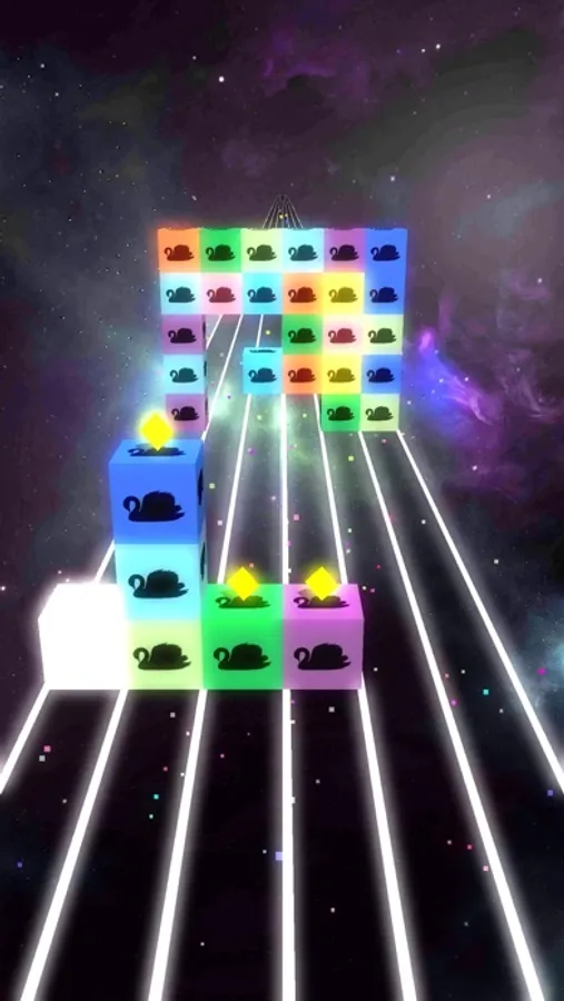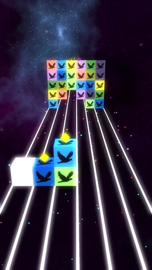 Follow the music to make the mood travel and collect more beautiful fluorescent square boxes;