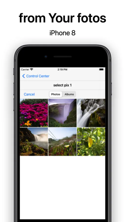 Play with the standard pictures, or better use select to choose images from the foto app. Your pictures are stored only on Your device.