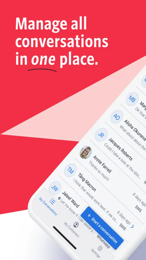 Twilio Frontline powers seamless digital relationships between customers and sales teams. With a dedicated personal inbox, workers are able to manage contact lists via CRM integration, field incoming message requests, and continue a conversation with customers, regardless of how they choose to communicate – over SMS, WhatsApp, or Voice.
