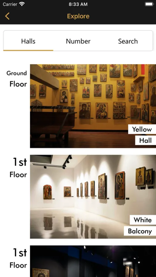 Points of interest are divided into halls as follows: