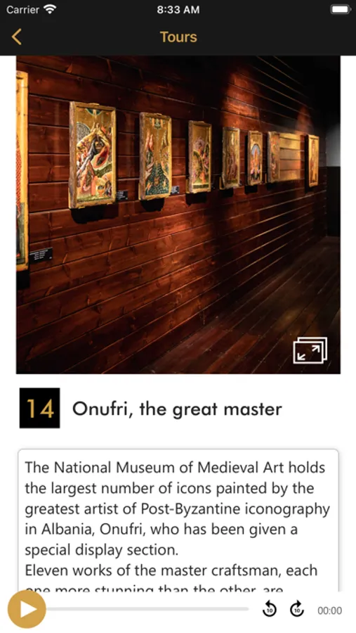 The audio guide can be used as a complete tour according to the defined itinerary or by searching the halls, specific works, authors, etc.