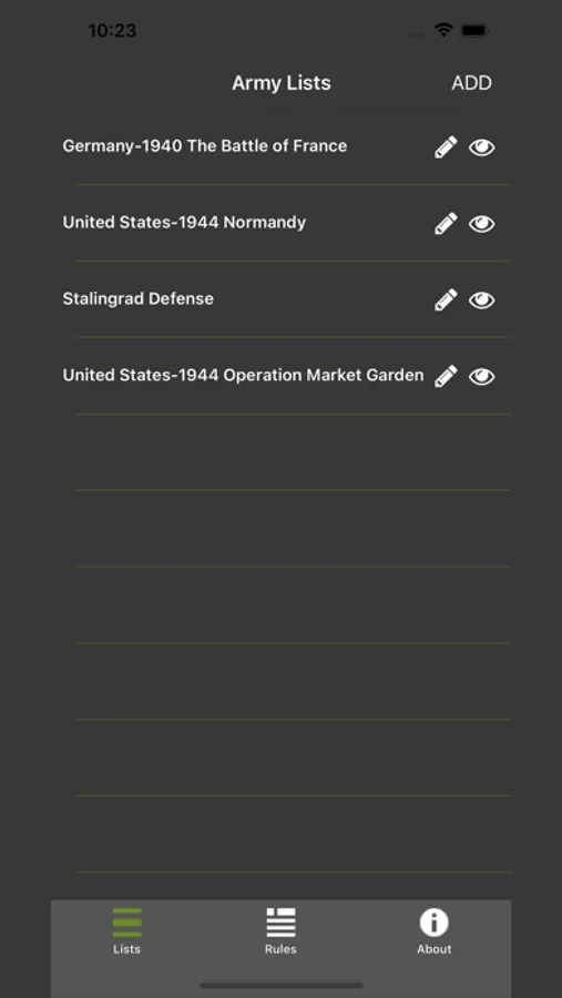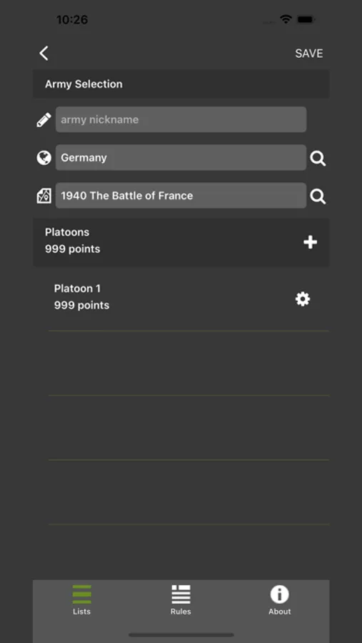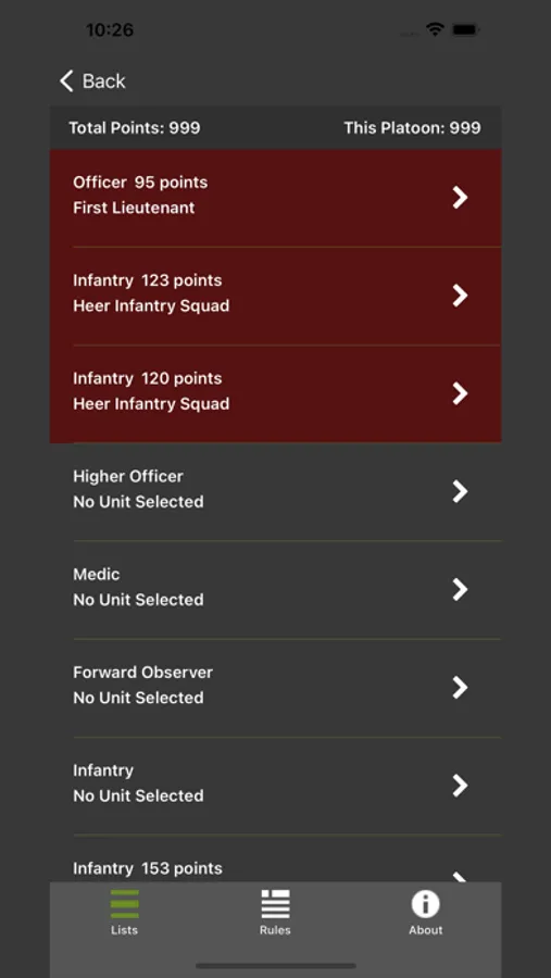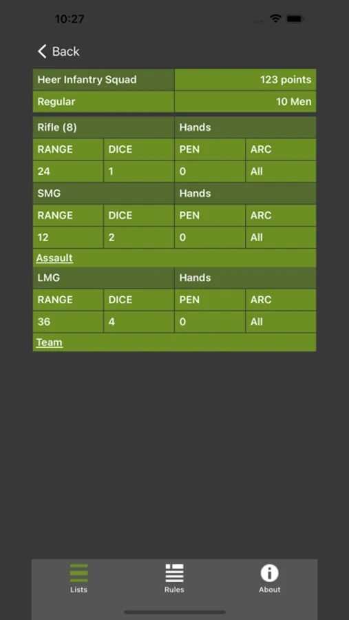 Build and maintain your army lists for Warlord Games WWII tabletop miniature game, Bolt Action. Handy rules reference and list viewer for unit information at a glance.