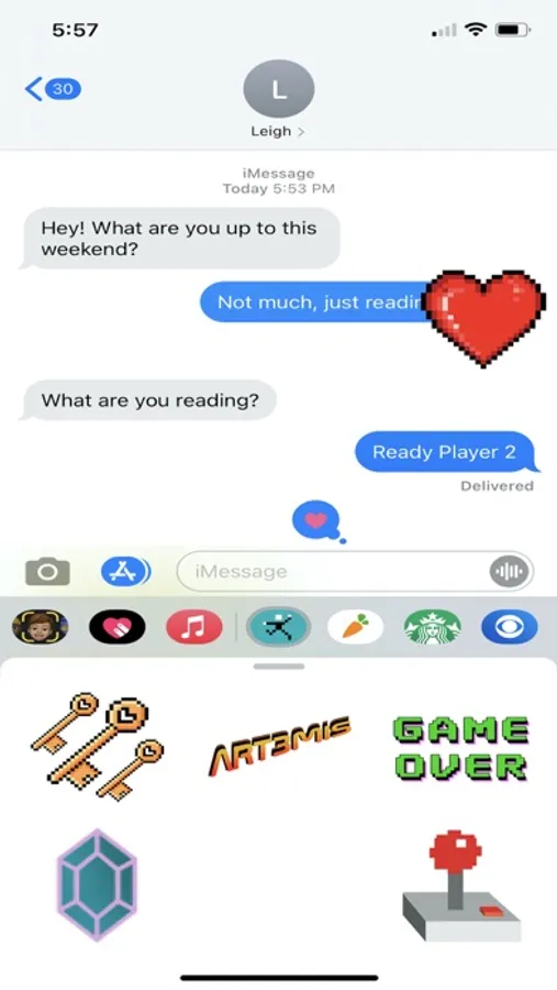 An iOS sticker pack with images inspired by Ready Player One and Ready Player Two by Ernest Cline.