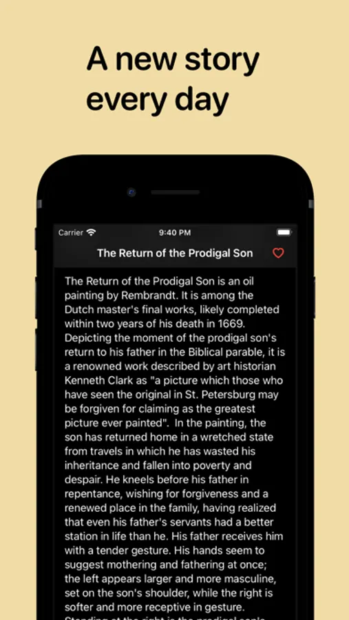 Discover impressive classic, modern art masterpieces every day and read short stories about them. You can add the artwork of the day as a widget on your iPhone.