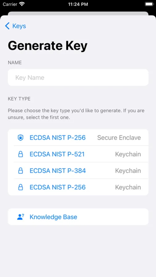 - Private Key Generation (ECDSA P-256 with Secure Enclave support, ECDSA P-386 and ECDSA P-521);