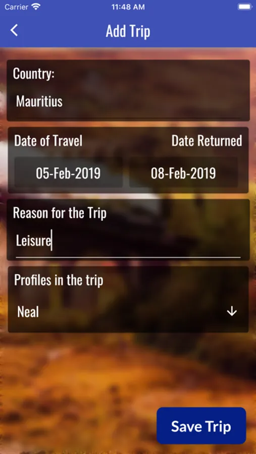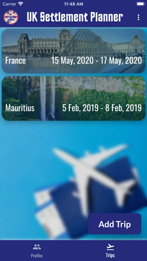 - will allow you to log your trips and vacations outside of the UK and associate it to one or more profiles
