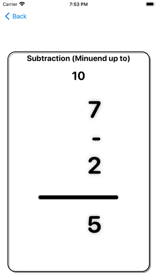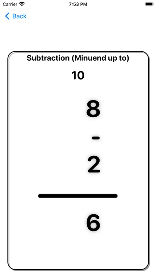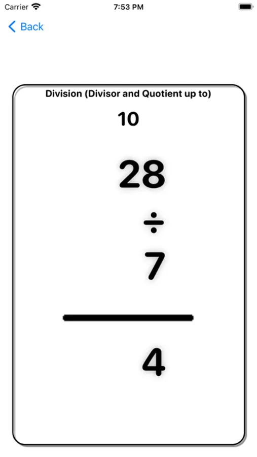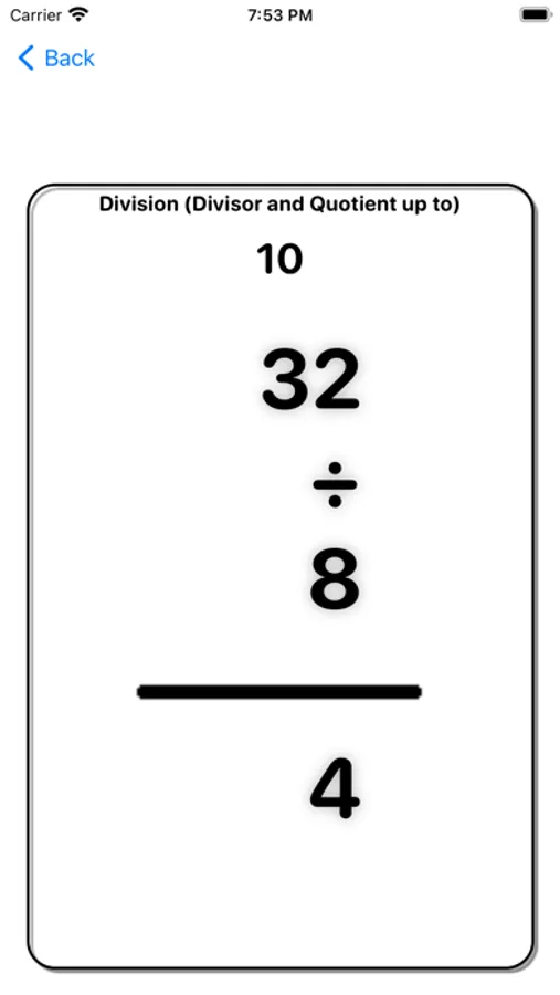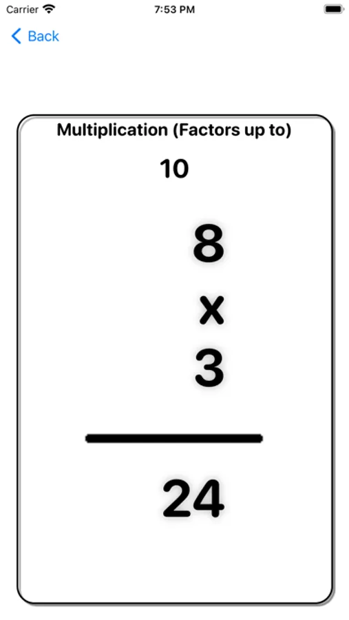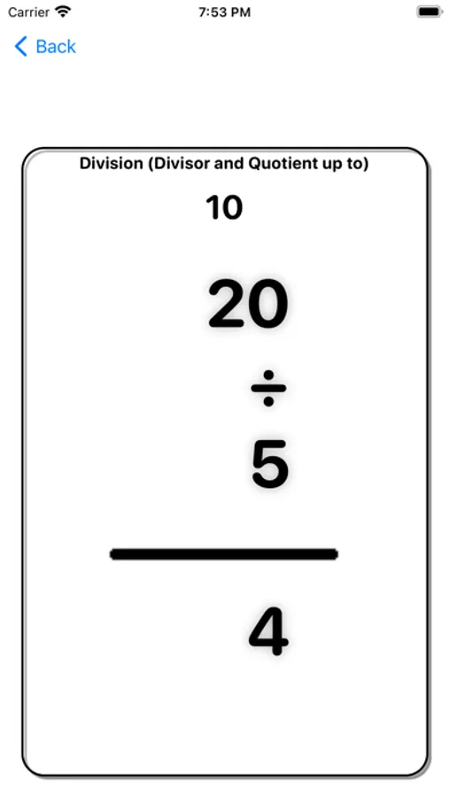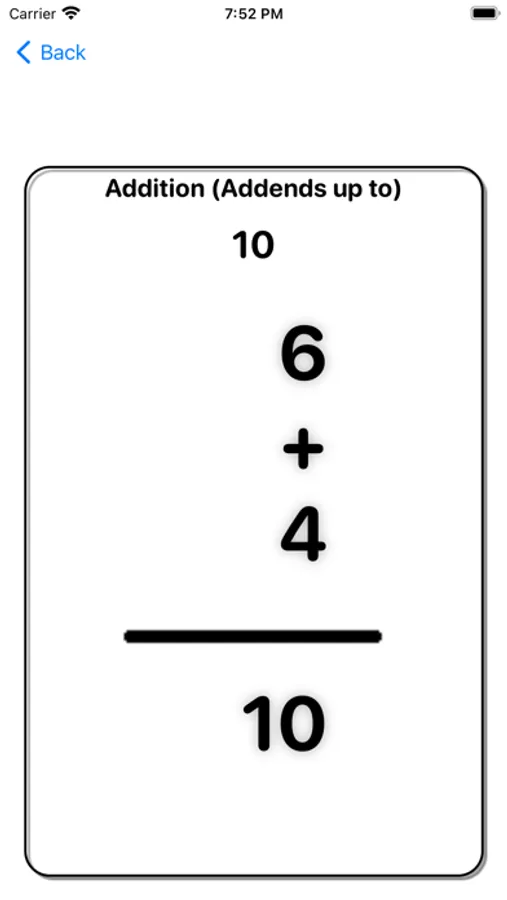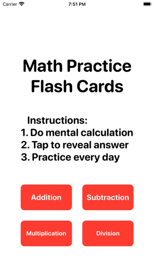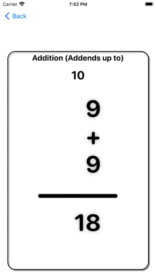 Once you select a category, tap the screen to show an operation. Think about the result. Once you have it, say it out loud. Tap again to reveal the result and confirm.