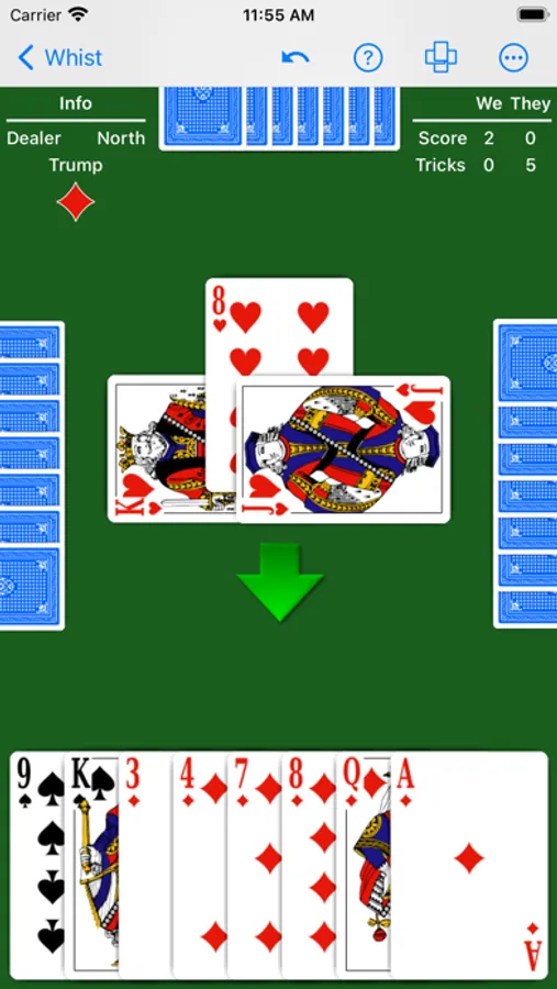 Play with the Whist rules you like against the challenging NeuralPlay AI.