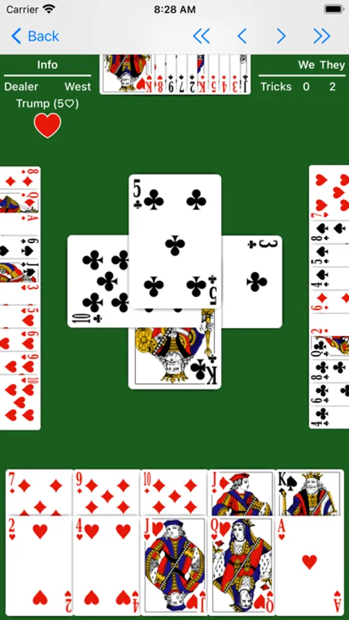 • Play review. Step through the play of the hand to review and improve your play.