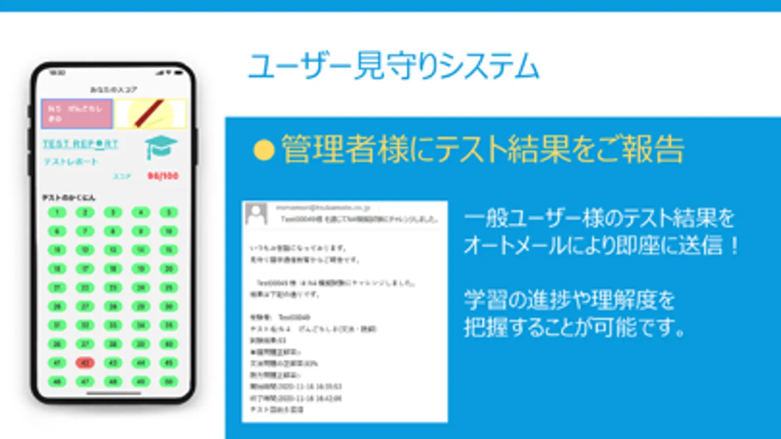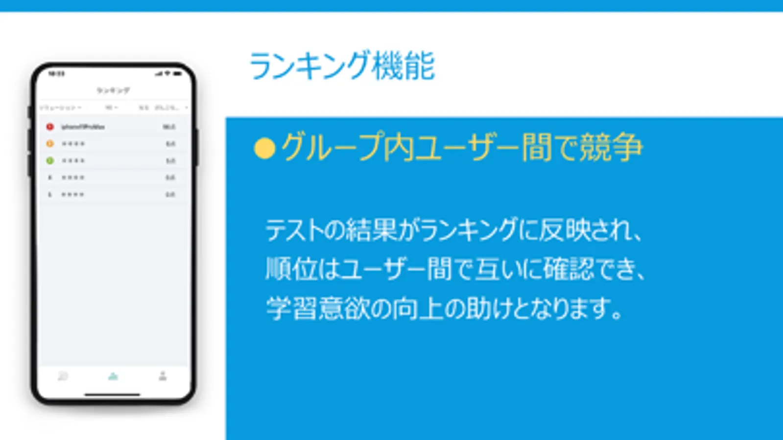 管理ユーザーが一般ユーザーの学習進捗度を確認できるフィードバックシステムやユーザー間のランキング機能などもあります。