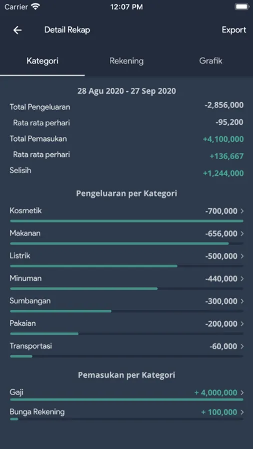 *) Fitur anggaran memungkinkan anda mengontrol pengeluaran dari awal bulan.