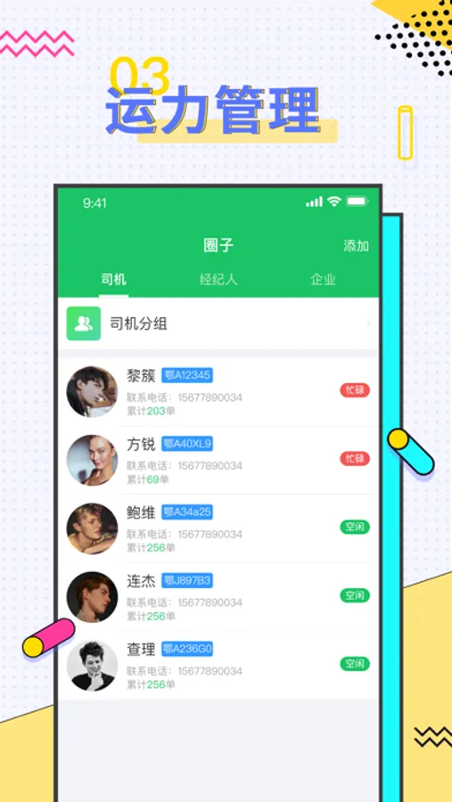 2、运力管理(记录与自己发生过实际业务的过往车队长和司机,完成对应的司机、车队长的信息管理,并且可以进行长期进行运力维护);