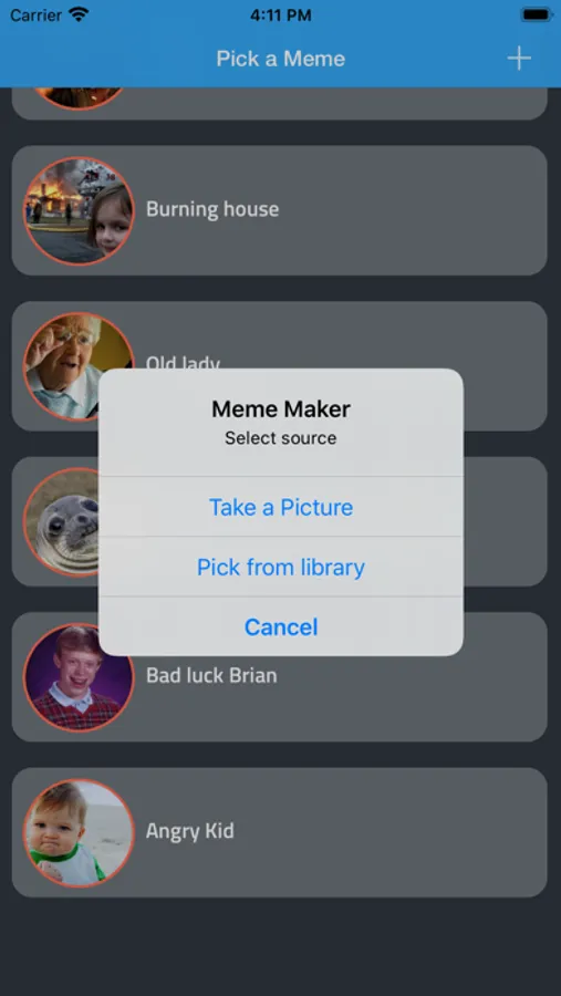 Create a funny meme image from your own pictures or from one of the many included in this app.