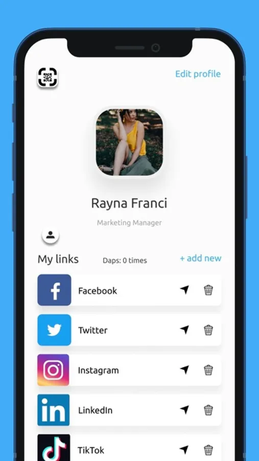 The Dappy app is where you manage your profile. Add, remove or update any links.