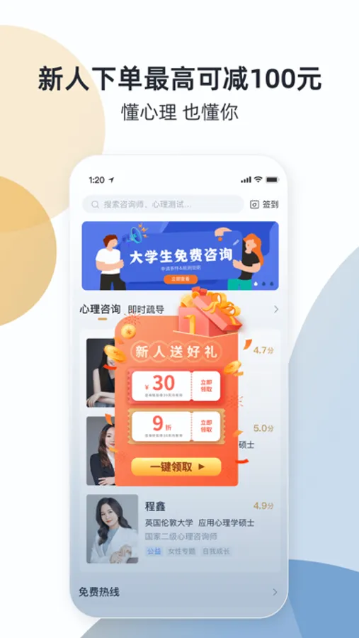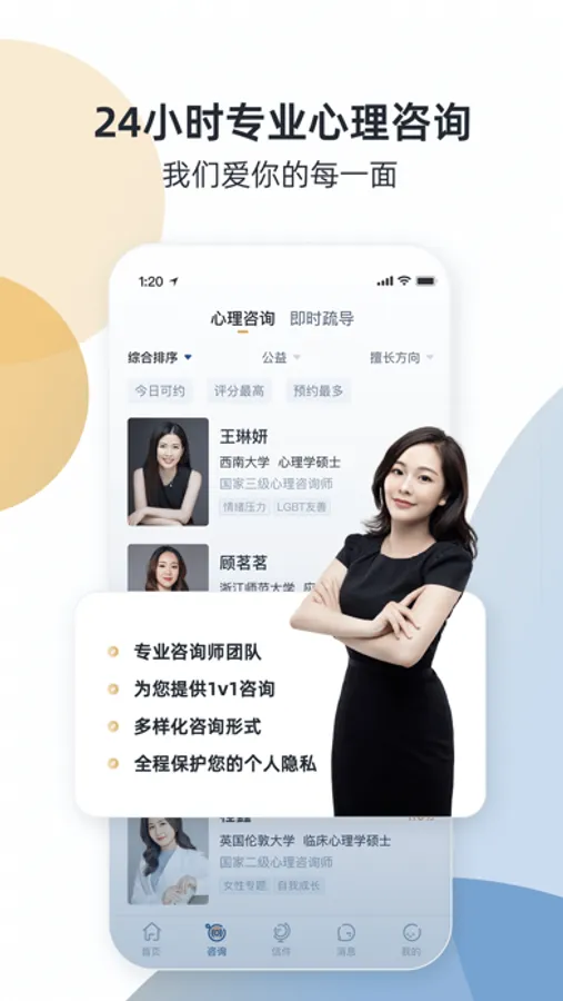 你可以在平台与专业的心理咨询师通过视频或语音的形式,进行远程心理咨询。心理咨询师可以帮助您实现自我提升、消除心境不适、提升人际交往能力、减轻童年创伤和原生家庭的影响等。