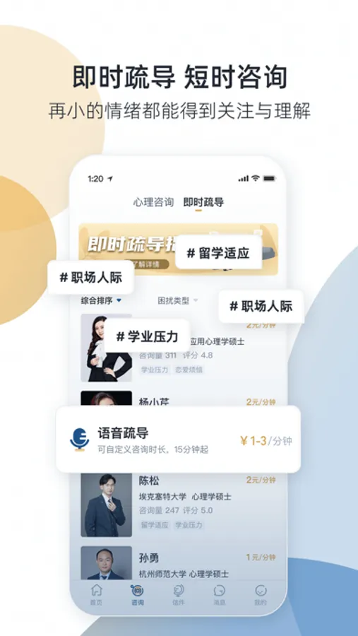 即时疏导是一项即时的、短时间的心理健康咨询服务。旨在帮助用户缓解或消除轻微、短暂的情绪烦恼;给予心理、情绪上的支持和鼓励,帮助用户更客观地看待问题和处理情绪。