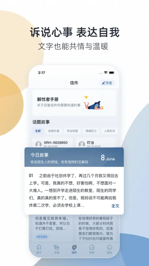当你有心事与烦恼,却不方便与身边的人们倾诉时,就在杏仁盒以书信的方式诉说吧。