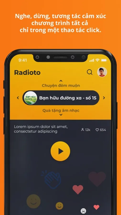 Radioto là app nghe các kênh radio, file audio kèm theo các tương tác, trò chơi, câu đố, gửi thông tin cảnh báo giao thông và quảng cáo.