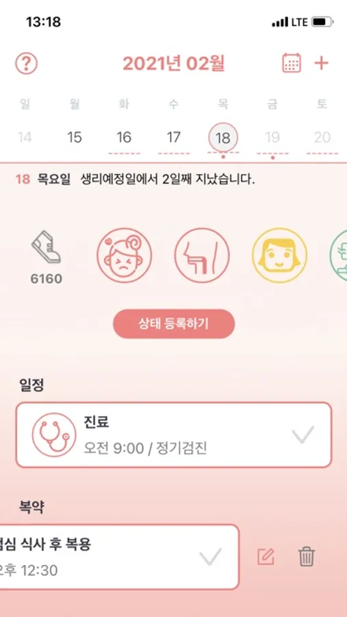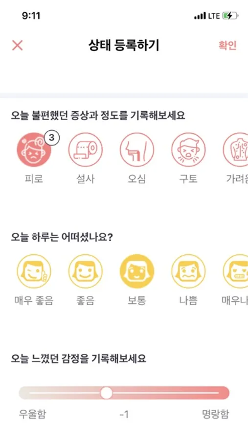 • 하루의 증상, 운동, 기분, 심리, 수면, 생리 상태를 기록해 보세요!