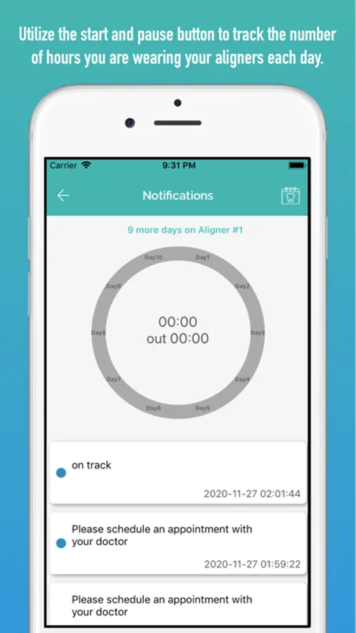Set notifications on a new treatment to remind you to switch to the next aligner