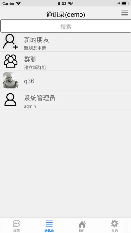 智能通讯支持各种加好友模式,包括二维码,名字查询,电话号码查询,以及好友 推荐模式。智能通讯支持群组管理,信息可群组发送。