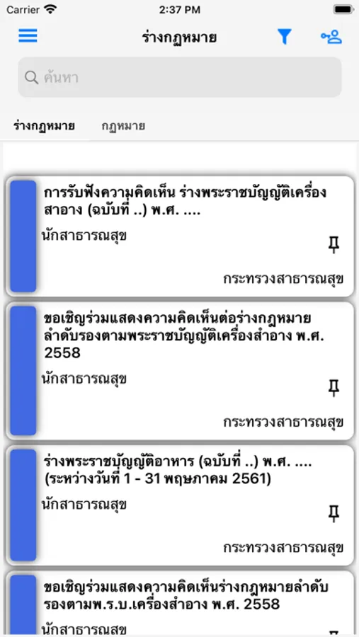 This application will allow Thai citizens to express their opinion for Draft law and evaluate the effectiveness of the law.