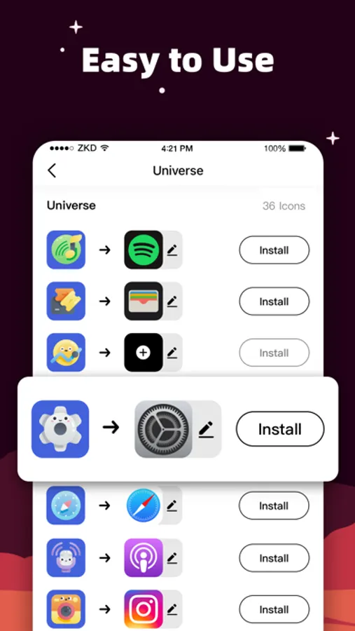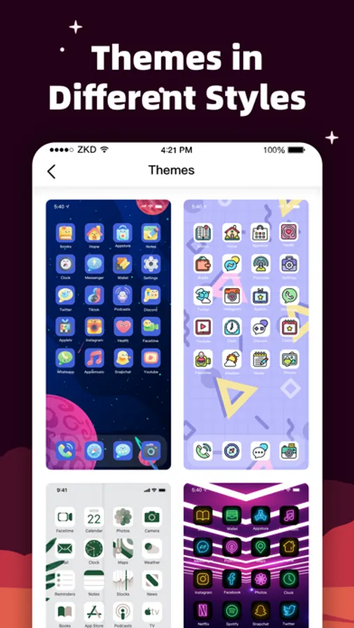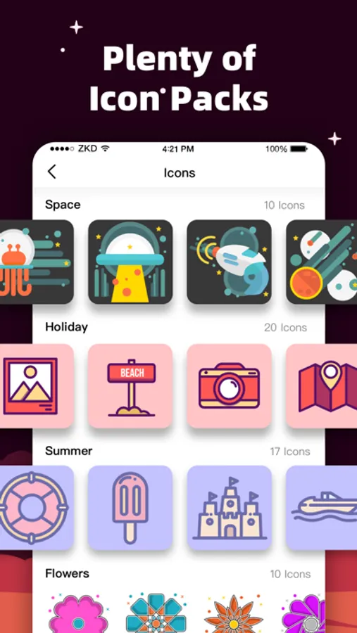 Using MyICON, you can replace the app icons on the home screen with a variety of pictures to make your home screen unique and show your personality and preferences. MyICON provides a wealth of well-designed icons, themes and wallpapers, you can choose from them as you like. With the custom icon feature, you can also choose your favorite pictures and photos from the local album to set as app icons. Download MyICON now and make your home screen look a whole new look!