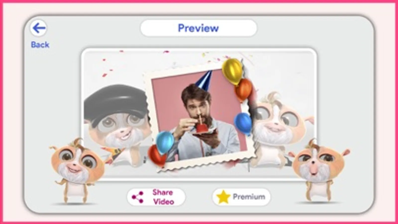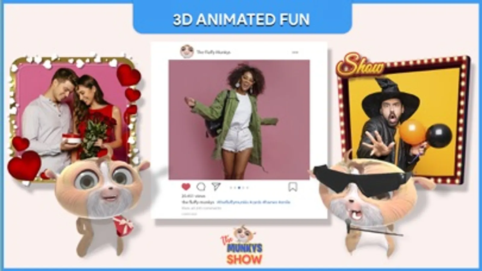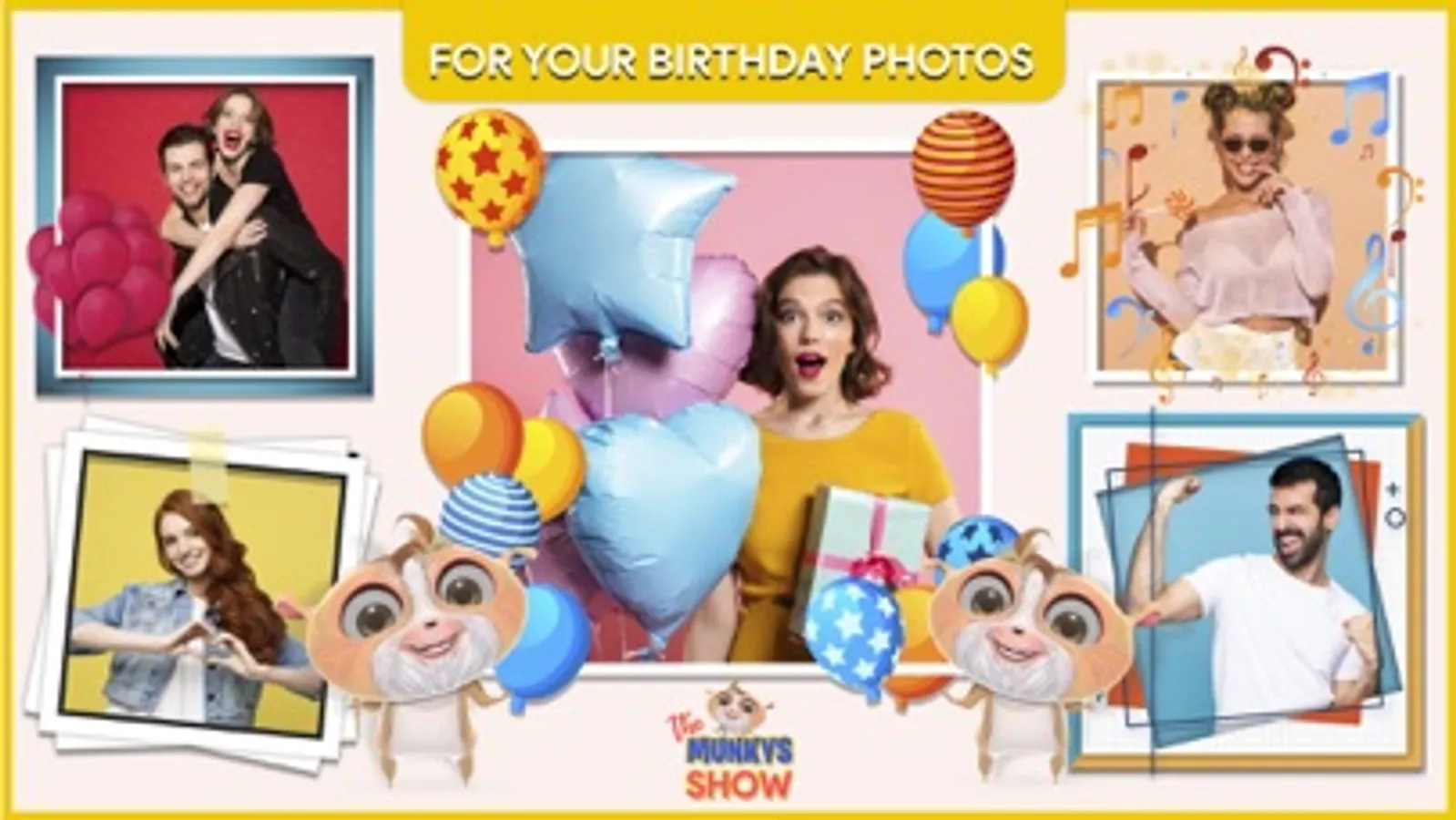 We offer you different themes that give your videos a cheerful atmosphere. Congratulate your friends and family on their birthday. Enjoy the different 3D scenes to congratulate your loved ones by sharing the funny scenes on social media. Make your birthday videos go viral in seconds. Every scene ends with a personalized photo frame with the picture of the person you want to surprise. Let the Munkys show make your friends or your partner laugh and greet them on their special day.