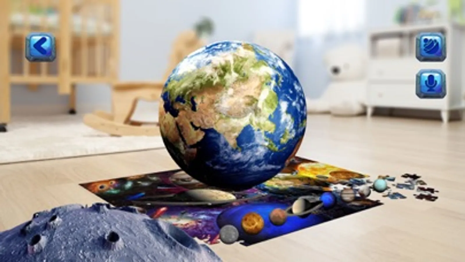 Augmented Reality пазл тоглоом нь сансар огторгуй, нарны аймгийн талаар хүүхдэд танин мэдэхүйн мэдлэг олгох бөгөөд гараг эрхэс, сансрын нисгэгчийг 3 хэмжээст дүрслэлээр харуулж, хийсвэр болон бодит орон зайн гайхамшигт ертөнцөөр аялуулах болно. Өнгө хэлбэр дүрс, хэмжээний тухай мэдэж тоглонгоо суралцаарай.