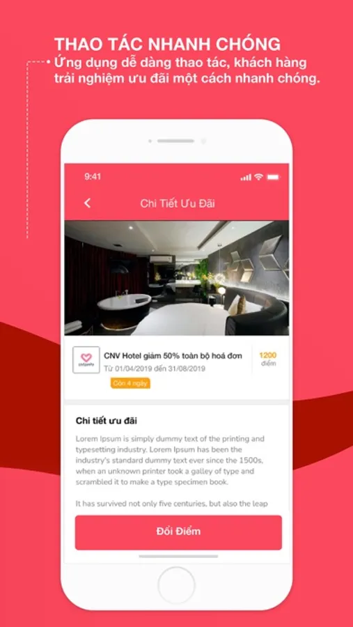 Khách hàng có thể đặt phòng ngay trên ứng dụng bằng cách chạm vào phòng và tiến hành thanh toán.