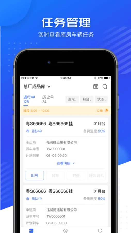 【任务管理】:实时查看库房月台车辆作业任务,运营更高效