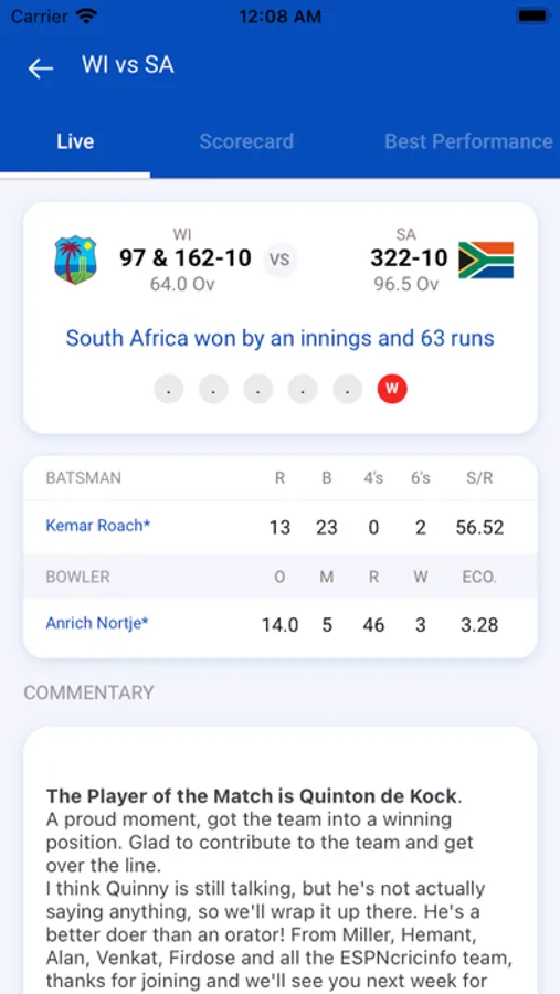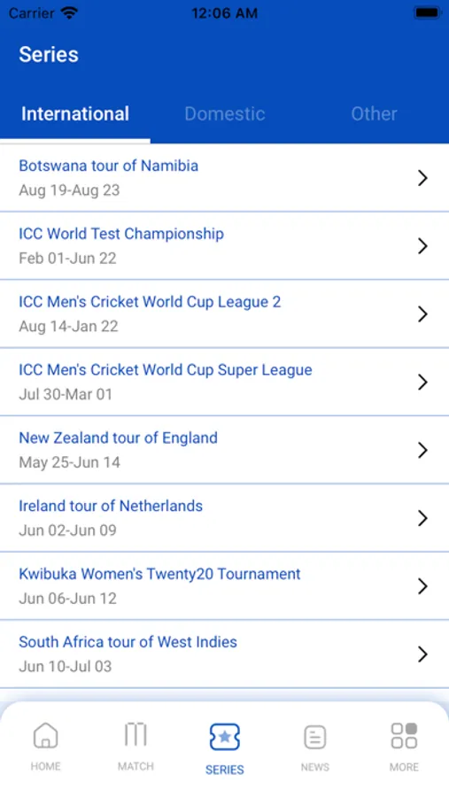 Live Cricket Score, Series List, Series Match List, Series Match Result, Series Player List, Breaking News, Match Summary, Ball by Ball commentary, Cricket Records, Player Ranking, Team Ranking, Point Tables