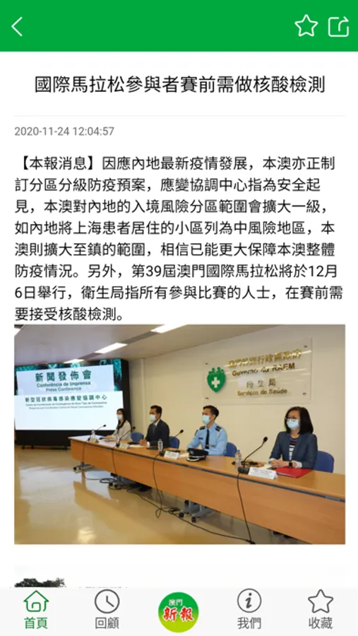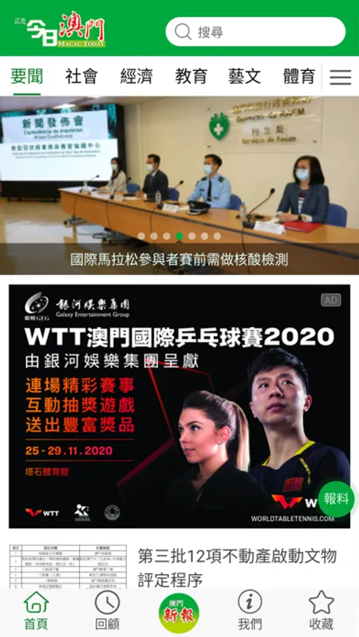 本應用程式推出初期一共設有9個主要資訊欄目:澳聞,社會,經濟,教育,藝文,體育,商訊,社團,健康。