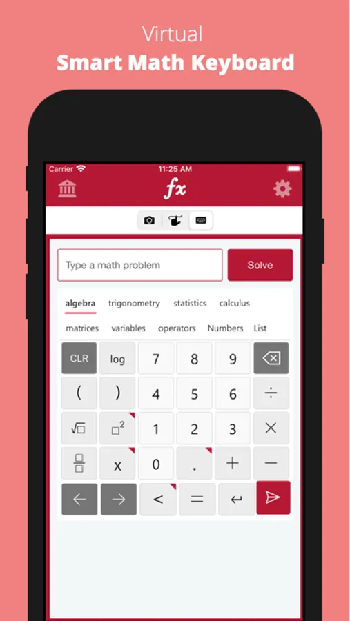 • Algebra: linear equations/inequalities, quadratic equations, systems of equations, logarithms, functions, matrices, graphing, polynomials
