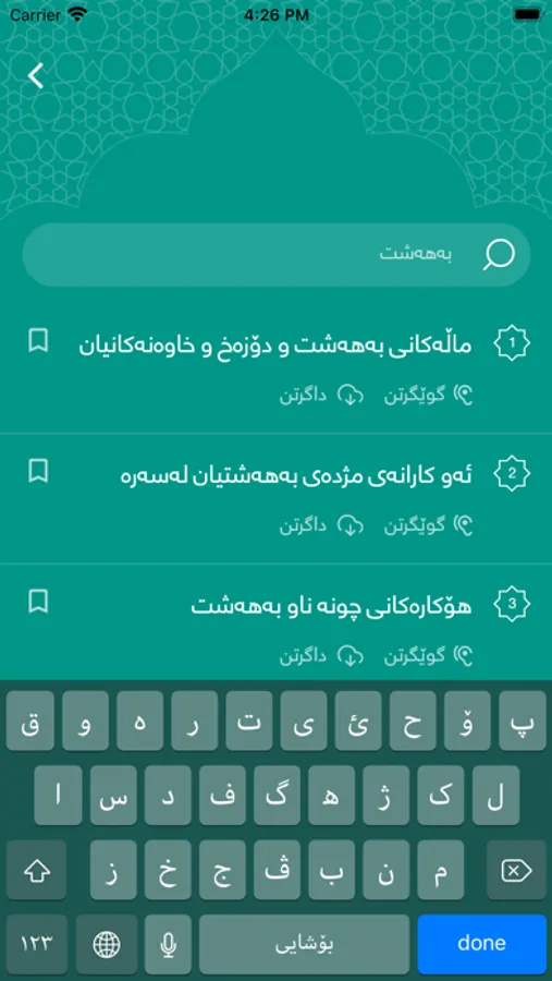 - زنجیرە وتار (مردنوژیانی ناوگۆر - قیامەت - بەهەشت - دۆزەخ - زەواج …)