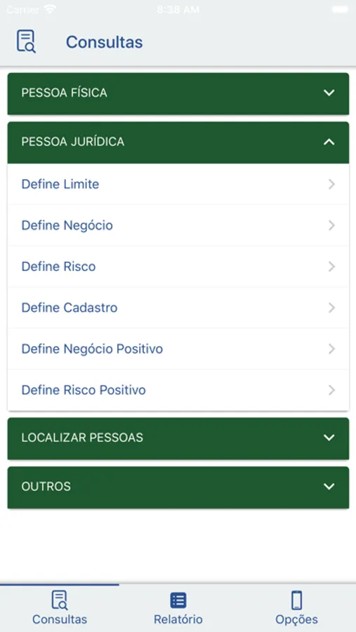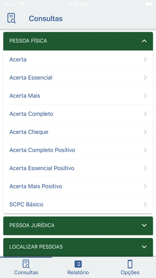 Além das consultas mais habituais, e o score de crédito, também estão disponíveis neste aplicativo as consultas das famílias Acerta e Define.