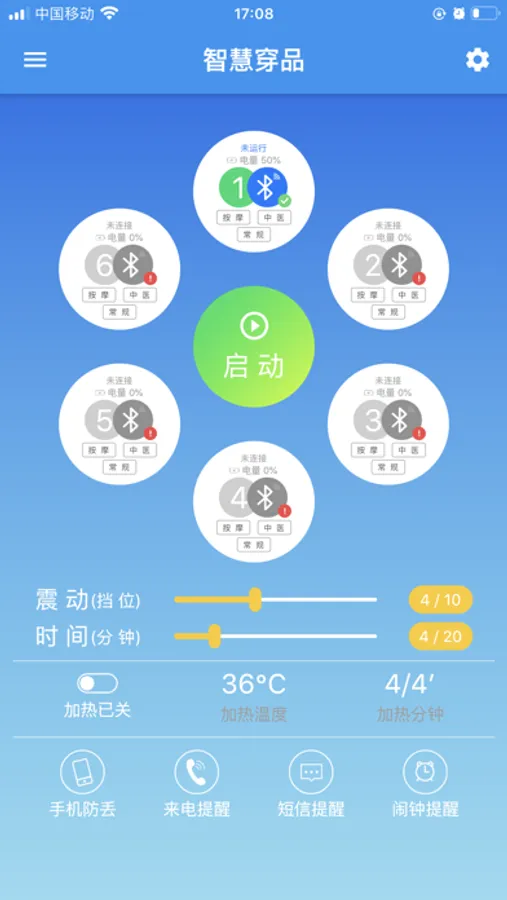 4、 本APP还添加了四个实用型功能:手机防丢、来电提醒、短信提醒、闹钟提醒,为使用者提供贴心服务。