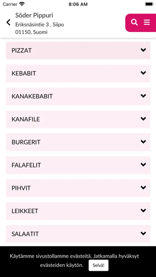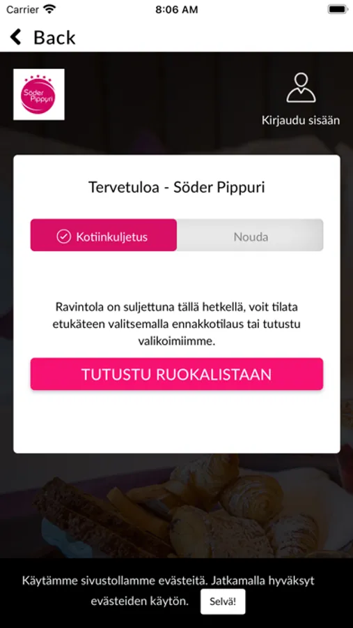 Ei aikaa kokata? Tuttu tunne. Tekeekö mieli hampurilaista, salaattia, pizzaa tai kebabia? Söder Pippuri toimittaa missä tahansa oletkin nopeasti ja helposti. Kokeile nyt!Kalkan-sovellus pähkinänkuoressa:*Nopea ja helppo tapa tilata ruokaa kotiin puhelimella*Ruoan saamisen tulisi olla mahdollisimman helppoa. Siksi voit voit maksaa suoraan sovelluksessa monella eri maksutavalla.Mikä vain sinulle parhaiten sopii.Jos sinulla on kysymyksiä liittyen palveluun voit lähettää meille sähköpostia osoitteeseen info@soderpippuri.fiwww.soderpippuri.fi