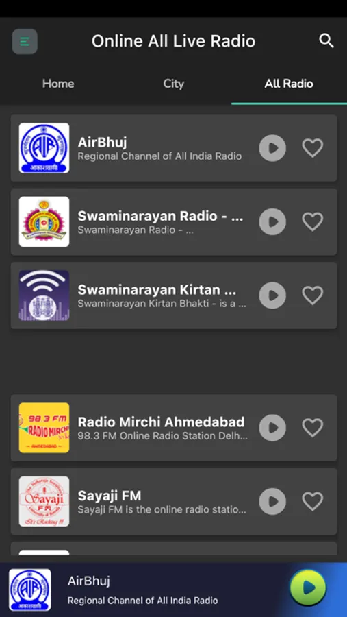 • Favorite stations - save radio stations you like in your Favorites list. If you add at least one radio station to it, the application will be started from the Favorites screen.